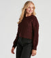 It's not a casual fling. this tie-back cable knit sweater is in for the long haul. It features a crew neck. cuffed long sleeves. and a keyhole back with tie detail. Perfect for styling with knee-high boots and leggings.Â