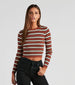 You'll be a total trendsetting babe this fall season with this multi-colored striped sweater. It features a crew neckline. long sleeves. and a cropped hem on sweater rib-knit fabric. Style with high-rise denim and a cute Panama hat.